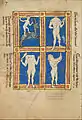 The Buch der Natur (ca. 1349), written by Conrad of Megenberg, described the "people without heads (läut an haupt)"[lower-alpha 14] as shaggy all over the body, with "coarse hair like wild animals",[lower-alpha 15] but when the printed book versions appeared, their woodcut illustrations depicted them as smooth-bodied, in contradiction to the text.[51] Conrad lumped peoples of various geography under "wundermenschen", and condemned such wondrous people as earning physical deformities due to the sins of their ancestors.[lower-alpha 16][52]