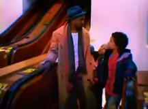 The first version of the music video for "Heard 'Em Say" was filmed live-action and harbors a distinct Christmas theme.[86] In the video, Kanye West played a homeless man watching over three fictional children who sneak into Macy's and stay overnight sometime near the Christmas season.[83][11] For the original video, West hired French film director, screenwriter and producer Michel Gondry.[45] The auteur is best known for his several innovative music videos with The White Stripes and Björk and has also been celebrated for his 2004 film Eternal Sunshine of the Spotless Mind.[45][11] He came from directing small music videos in Paris for his own independent rock band Oui Oui, in which he served as a drummer.[87] West was the one who took the initiative to track Gondry down, insisting that they work together.[88] According to Gondry, West begged him for two years before he finally accepted the request to do his video.[87] Even though "Heard 'Em Say" marked the first time Gondry directed a music video for West, it was not the first time that the two collaborated with each other. West had provided a live performance during his appearance in Gondry's forthcoming 2005 documentary film, Dave Chappelle's Block Party.[11][86] In addition, the director played live drums on "Diamonds From Sierra Leone", the lead single for Late Registration.[11] It was however the very first time Levine and Gondry had worked together. Levine imparted, "I've been dying to work with him forever. I was just blown away that I got the opportunity. Then I read the treatment and I found out that I would being a little bit of, you know, video acting, which is funny."[11]