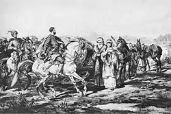 For many weeks Zagłoba and Helena wandered the country at war. They finally managed to get to Bar, where Helena was supposed to be safe from pursuit. Bar, however, was soon captured by Cossacks led by Bohun. At the sight of him, Helena stabbed herself with a knife. Bohun took the wounded girl to the ravine on the river Dniester in order to hide her. He put Helena in the Devil's Valley, in the care of his friend - witch Horpyna and left to the war. Thanks to information from Rzędzian, Skrzetuski's friends (Zagłoba, Wołodyjowski and Rzędzian) found Helena and freed her. On their way back they had to divide into two groups because of Tartars' attack. Rzędzian and Helena escaped to Zamość. After the Siege of Zbarazh and signing the treaty with Cossacks, Helena finally reunited with her beloved Skrzetuski. They soon went to Lviv to get married.