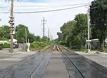 The line north of Hempstead Crossing last saw passenger service on September 14, 1935,[14] and was abandoned for freight in 1965.[15] Park Interlocking at Floral Park was taken out in the circa-1960 grade crossing elimination; since then Hempstead Branch trains switch off the Main Line at Queens Village and continue next to it to Floral Park.[16]