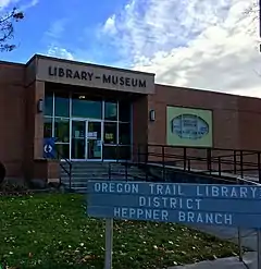 The Heppner Library-Museum is a joint public library and county museum located in Heppner, Oregon. The library is a branch of the Oregon Trail Library District and part of Oregon's Sage Library System. In 1958, Mrs. Amanda Duvall gifted the library to Heppner as a memorial to her husband and daughter. The City of Heppner donated the land upon which Duvall’s gift was constructed. The work was completed by the McCormack Construction Company of Pendleton and the Case Furniture Company of Heppner. The Heppner Library-Museum was dedicated in 1960 and remains an active and important anchor in the community.[1][2][3]