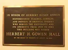 - "Herbert H. Gowen papers, 1909-1951". Archives West. Orbis Cascade Alliance. Retrieved March 19, 2017.