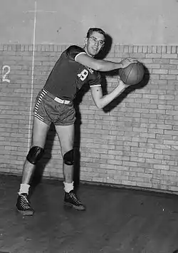 Herm Brunotte (August 26, 1921 – March 5, 2010) was an American college and professional basketball player. Born in Brooklyn, New York, he was a star guard at Brooklyn Polytechnic until the outbreak of World War II sent him to Model City near Niagara Falls, New York for classified work in support of the Manhattan Project. He began taking courses at nearby Canisius College in Buffalo, and joined their basketball team. In 1944, he won the team's Most Valuable Player Award for leading the school to its first berth in the eight-team National Invitation Tournament in Madison Square Garden. Brunotte scored a team-high 11 points in a 43–29 first-round loss to Oklahoma A&M on March 20, 1944 before a crowd of 16,273. The undersized Canisius team was forced to dramatically alter its shots when confronted with 7-foot center Bob Kurland, who excelled at defensive goaltending. The 1943–44 season marked the end of legal defensive goaltending in NCAA competition. Canisius finished with a win–loss record of 15–6 including a 48–43 regular season win over eventual NIT champs St. Johns. Brunotte was named a Sporting News 3rd Team All-American.
