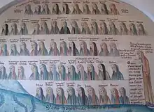 As abbess, Herrad worked on rebuilding the monastery, as well as consolidating the land surrounding the monastery under its ownership.[3] She proved herself to be a capable and well-loved abbess, and it was at this time that she began her work on the Hortus Deliciarum. Herrad was abbess for 28 years, and continued in that office until her death in 1195. Adelhaid of Faimingen was her successor.[4][5]