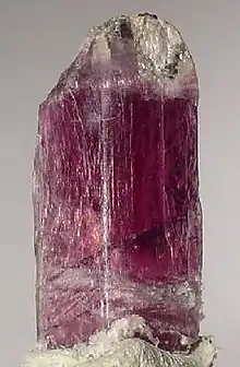 Hexagonite is pleochroic, potentially displaying varying shades of blue, violet, purple, or red.[1] It is also known as "mangan-tremolite", since the manganese imparts the mineral's unique colors. Pink, lilac, and purple are the most common colors.[1] Hexagonite has been successfully faceted.[1]