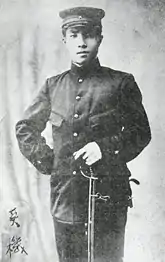 Hideki Tojo was born in the Kōjimachi district of Tokyo on December 30, 1884,[2] as the third son of Hidenori Tojo, a lieutenant general in the Imperial Japanese Army.[3] Under the bakufu, Japanese society was divided rigidly into four castes; the merchants, artisans, peasants and the samurai. After the Meiji Restoration, the caste system was abolished in 1871, but the former caste distinctions in many ways persisted afterwards, ensuring that those from the former samurai caste continued to enjoy their traditional prestige.[4] The Tojo family came from the samurai caste, though the Tojos were relatively lowly warrior retainers for the great daimyōs (lords) that they had served for generations.[5] Tojo's father was a samurai turned Army officer and his mother was the daughter of a Buddhist priest, making his family very respectable, but poor.[4]