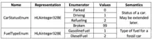The purpose of the enumerated datatypes table is to describe data elements that can take on a finite discrete set of values. One predefined enumerated datatype is provided in the standard: HLAboolean. It is common to include user defined enumerated datatypes in a FOM.