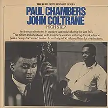 High Step is a jazz double album credited to bassist Paul Chambers and saxophonist John Coltrane, issued in 1975 on Blue Note Records, catalogue BN-LA451. It is a compilation taken from the 1956 Chambers' Music on the Jazz West label and Whims of Chambers, along with two unissued recordings from a session in Boston, Massachusetts, "Trane's Strain" from that session previously appearing on an anthology. Originally, all of these sessions were led by Chambers, but like Prestige Records before them, as Coltrane's fame grew long after he had stopped recording for the label, Blue Note used varied recordings where Coltrane had been merely a sideman, and reissued them with Coltrane's name more prominently displayed.