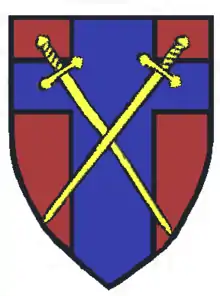 The corps formation sign would be worn by headquarters and any attached troops, that is, those not in a division, independent infantry or armoured brigade, an Army Group Royal Artillery or a lines of communication formation. After the B.E.F.'s return from France, existing and newly formed Corps (I - XII) were allocated districts, and known as 'Corps districts', under the existing Home Commands, as shown below. They were replaced by military districts during 1942 and 1943.[52] Not shown are VI Corps, based in Northern Ireland and VII Corps based around Oxfordshire and Gloucestershire, neither had a formation sign as a real formation and both were disbanded before the end of 1940.[53][54]