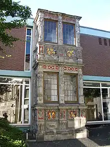 - Kaiserhaus (Emperor's House): Renaissance building (1586) in Alter Markt, the oldest street of Hildesheim, rebuilt after the war. The façade is decorated with Roman statues and medallions. Opposite, there is a noteworthy sandstone bay window dating from 1568. Originally, it belonged to a private house which was torn down at the end of the 19th century. The bay window was dismantled before and added to another house in the eastern part of Hildesheim which remained undamaged during World War II. From there, the bay window was removed when the house was remodelled and added to the school at the present site in 1972.[7]