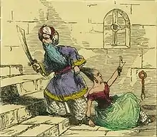 A widower many times over—having killed all his wives—and childless, Bluebeard's character would not necessarily have been unusual at a time when women frequently died in childbirth and men remarried.[22]