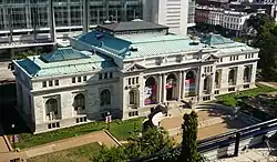 In 1954, the District of Columbia Public Library, which had been storing the Society's collections, threatened eviction because of its own space problems.[1] The Society's Board of Trustees appealed to the membership for a home.[1] In 1955, Amelia Keyser Heurich, widow of prominent Washington brewer Christian Heurich, donated the family's four-story mansion) near Dupont Circle, which became the Society's headquarters.[1] The Society took possession of the mansion during the following year when Mrs. Heurich died.[2]