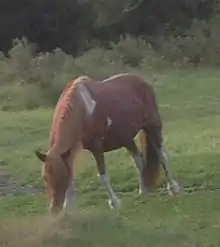Once ownership of the island was settled, it was used mostly as a place to house livestock, since there was no need for fences or other enclosures to prevent the animals from straying, and they could feed off of the marsh grasses.[7] This usage was most likely the origin of the ponies that have made Chincoteague and Assateague Islands famous, though there are legends that the ponies' ancestors survived a shipwreck of a Spanish vessel. One such ship did run aground on Assateague Island in 1750, but according to John Amrhein Jr. in his account of his efforts to locate that vessel, "the mystery of the origin of the wild ponies became fused with the oldest memories of the Spanish shipwreck".[8]