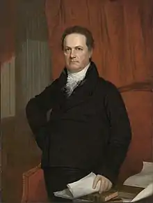 During the period of Johnson's presidency, the College's campus began to expand, and in 1792 a new library extension was built to accommodate the College's growing library with the help of a grant from the Legislature of New York State. In December 1793, the Professorship of Law was filled by the election of James Kent, who gave the first instruction of law at any American University and was a forerunner to the University's Law School.[23] On July 16, 1800, the seventy-four-year-old Dr. Johnson resigned his presidency of the College.[24] In 1801, the Board of Trustees appointed Charles Henry Wharton as Dr. Johnson's successor. Wharton was to assume the office of president at the August commencement ceremonies, but he did not appear for them, and resigned in the fall.[25]