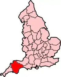 The date that the Anglo-Saxons began to settle in Devon is not certain. Raids westwards from the core territories of Wessex seem to have been set in motion about 660. After a battle fought probably at Penselwood in 658 the West Saxons advanced to the River Parrett and by 682 they had reached the Quantocks and were pressing forward into the coastal plain.[5] Wessex under King Cynewulf emerged from Mercian domination and began advancing west again from Taunton,[6] established as an advanced West Saxon position in 710 by King Ine, who defeated in that year the last recorded independent king in Devon; the codified Laws of Ine made provision for the Wealhas, the Welsh "foreigners", some of whom retained positions of responsibility.[7] The end of the fighting appears to have been a protracted and miserable affair. Campaigns by King Ecgberht of Wessex in Devon between 813 and 822 appear to have resulted in the defeat of the West Welsh in Cornwall but not their complete disposition. William of Malmesbury reports negotiations between King Alfred of Wessex and King Dungarth of the Cornish in c. 876 held somewhere near Exmoor in Devon; presumably Alfred would have sought reassurances over his western frontier as he conspired to defeat the Danes.[8] It seems most likely that the final acts of conquest of Devon by Wessex came under King Æthelstan of the English. William of Malmesbury claimed that "the Britons and Saxons inhabited Exeter aequo jure" - "as equals". However Æthelstan notably expelled “that filthy race” from Exeter in 927.[9] Some sources, notably the Cornish antiquary William Borlase, state that the expulsion of the Britons from Exeter was the first act in a military campaign against the West Welsh led by Æthelstan. William Borlase says there was a battle against King Howel of the West Welsh at Haldon near Teignmouth in 936 where the West Welsh were soundly defeated. It seems they were then pursued westwards across the River Tamar and through Cornwall where they were defeated again close to Land's End in what may have been a “last-ditch” encounter that probably ended in slaughter,[6] thus rendering the statement made centuries earlier and known to us as The Groan of the Britons seem morbidly appropriate; "The barbarians drive us to the sea, the sea drives us to the barbarians, between these two means of death we are either killed or drowned". An inflamed and astonished Welsh reaction to these events is found in the contemporary poem, Armes Prydein, where the last independent king of Cornwall, reputedly King Howel, was said to lament: