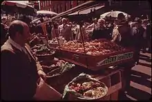 According to some historians, Italians in Boston were reluctant to apply for government relief during the Depression.[36][37] Whyte writes in the introduction to Street Corner Society that "a large proportion of the population was on home relief or W.P.A." at the time.[38] Being "on W.P.A." meant working on public projects funded by the Works Progress Administration, usually doing roadwork or construction.