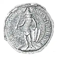 The family of Gediminas, whose members were about to form Lithuania's great native dynasty,[33] took over the rule of the Grand Duchy in 1285 under Butigeidis. Vytenis (r. 1295–1315) and Gediminas (r. 1315–1341), after whom the Gediminid dynasty is named, had to deal with constant raids and incursions from the Teutonic orders that were costly to repulse. Vytenis fought them effectively around 1298 and at about the same time was able to ally Lithuania with the German burghers of Riga. For their part, the Prussian Knights instigated a rebellion in Samogitia against the Lithuanian ruler in 1299–1300, followed by twenty incursions there in 1300–15.[29] Gediminas also fought the Teutonic Kights, and besides that made shrewd diplomatic moves by cooperating with the government of Riga in 1322–23 and taking advantage of the conflict between the Knights and Archbishop Friedrich von Pernstein of Riga.[34]