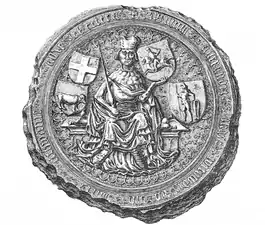 Vytautas had been frustrated by Jogaila's Polish arrangements and rejected the prospect of Lithuania's subordination to Poland.[62] Under Vytautas, a considerable centralization of the state took place, and the Catholicized Lithuanian nobility became increasingly prominent in state politics.[63] The centralization efforts began in 1393–1395, when Vytautas appropriated their provinces from several powerful regional dukes in Ruthenia.[64] Several invasions of Lithuania by the Teutonic Knights occurred between 1392 and 1394, but they were repelled with the help of Polish forces. Afterwards, the Knights abandoned their goal of conquest of Lithuania proper and concentrated on subjugating and keeping Samogitia. In 1395, Wenceslaus IV of Bohemia, the Order's formal superior, prohibited the Knights from raiding Lithuania.[65]