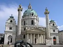 The idea of a large oculus in a solid dome revealing a second dome originated with Guarini.[86] He established the oval dome as a reconciliation of the longitudinal plan church favored by the liturgy of the Counter-Reformation and the centralized plan favored by idealists.[87] Guarini's drawings, including isometric intersections of spheres, barrel vaults, and oval domes as well as drawings explaining construction and ceiling patterns, were published posthumously in the Architettura Civile and influenced the designs of Hildebrandt, the Dientzenhofers, and Balthasar Neumann in Central Europe. With the newly developed mathematics of calculus, these experimental designs could be proven and would become the foundation of Rococo spatial arrangements.[88]