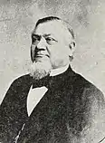 On January 19, 1865, August Stursberg would purchase a woolen mill in South Holyoke that had opened two years prior, renaming it "Germania Mill", as it was to be known for nearly the next 100 years.[1] He would embark to America with his family and a team of skilled workers and supervisors on September 16, 1865, aboard the S.S. Allamania. August would play a substantial role in the emerging community both in the shaping of this industry but also in the accompanying cultural institutions that would support it.[5]:74–75 A devout Lutheran, he was credited with bringing in the German-language Lutheran ministers who first preached in a schoolhouse at the corner of Sargeant and Clemente (Park) Streets in 1866, and was a significant benefactor in the building of the first permanent home of the German Lutheran Church, now known as the First Lutheran Church, established in 1867. One historical account by the Holyoke Transcript notes that the church in its earliest years was a product of several other denominations, having been aided by local Congregationalists and served by two Presbyterian ministers, Pastor Schwartz and Pastor Frankel, the former of which also taught German classes in Holyoke.[6] For the first several years the official denomination of the church was met with fervent debate, and it remained the only major German institution outside of Germania Mills, while still being strongly influenced by the Stursbergs.[1]