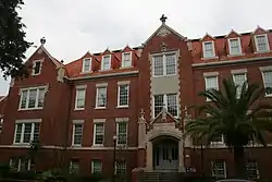 A number of the University of Florida's buildings are historically significant. The Campus Historic District comprises numerous buildings and encompasses approximately 650 acres (2.6 km2).[27] Two buildings outside the historic district, the old WRUF radio station (now the university police station) and Norman Hall, are also listed on the historic register.[28] The buildings listed on the U.S. National Register of Historic Places for their architectural or historic significance are: