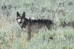 Updated research in the 1980s verified that the last official killing of wolves in the park took place in 1926 when two pups found near Soda Butte Creek were killed by park rangers.[7] The last reported wolf killed in the Greater Yellowstone Ecosystem (prior to today's legal hunting or control measures) occurred in May 1943 when Leo Cottenoir, a Native American sheepheader on the Wind River Reservation shot a wolf near the southern border of the park.[8]