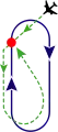 A standard holding pattern. Shown are the entry (green), the holding fix (red) and the holding pattern itself (blue)