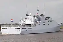 The Holland-class ocean-going patrol vessels are a class of four ocean-going patrol vessels constructed for the Royal Netherlands Navy. They are designed to fulfill patrol and intervention tasks against lightly armed opponents, such as pirates and smugglers, but have much higher level electronic and radar surveillance capabilities which are used for military stabilization and security roles, short of outright war. Without sonar or long range weapons, they utilize the surveillance capabilities of the Thales integrated mast, which integrates communication systems and two 4-faced phased arrays for air and surface search.[3]