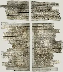 The Holy Cross Sermons (Polish: Kazania świętokrzyskie) are the oldest extant prose text in the Polish language, dating probably from the late 13th, or from the early 14th century. The documents are named after the place where they were originally housed – the Holy Cross Monastery (pl) in Poland's Holy Cross Mountains (Polish: Góry Świętokrzyskie). They were discovered in striped parchment pieces in 1890 by Aleksander Brückner, in the binding of a Latin language codex, which contained the Acts of the Apostles and the Apocalypse. The sermons were first published in 1891, in a "Philological Works" ("Prace Filologiczne") magazine. In 1934, facsimiles of the text were published by the Polish Academy of Learning, and in 2009, new, full edition of the sermons was issued, prepared by professor Pawel Stepien.