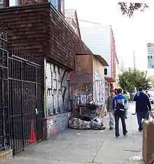 The prevalence of homelessness emerged both in San Francisco and the United States in general in the late 70's and early 80's. Jennifer Wolch identifies some of these factors to include the loss of jobs from deindustrialization, a rapid rise in housing prices, and the elimination of social welfare programs.[10] The Reagan Administration made large cutbacks on affordable and public housing programs, such as Section 8, leaving much of the task of providing public and supportive housing up to local jurisdictions.[11][12][13] The economic shift from production oriented jobs in factories towards the service industry resulted in a loss of wages as factory jobs were more lucrative. This decrease in wages was compounded by the fact housing prices continued to rise, with average real estate value in the Bay Area increasing by 100% between 1984 and 1990.[14] As these economic changes were occurring, social events also impacted the city's homeless population. The deinstitutionalization movement of the 1970s had succeeded, and saw the mass transfer of mental health patients to community based clinics. This transfer was not smooth, as many previously institutionalized patients found themselves back in society with less support than they were accustomed to and few possessed the professional skills or resources needed to successfully transition.[15] The failure of deinstitutionalization is often attributed to the cuts to mental health services made at the same time, with mental health budgets decreasing by a third between 1978 and 1982.[10] As a result, the homeless population has had a disproportionate rate of mental health needs ever since the 80's.
