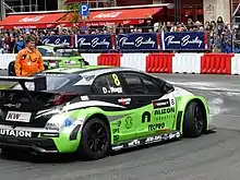 Gabriele Tarquini and Tiago Monteiro entered the 2013 FIA World Touring Car Championship with Civic WTCC cars.[51] Three Honda Civic race cars made a clean sweep in races held in Slovakia and Shanghai by winning the first, second and third positions.[66] Honda Racing Team JAS and Zengő Motorsport entered the 2013 WTCC tournament.[67] Gabriele Tarquini won the overall second place in the 2013 WTCC drivers' championship and Honda won the Manufacturers' World Championship.[68] The cars used a 1.6-litre inline-4 direct injection turbocharged engine with an intercooler and a dry oil sump.