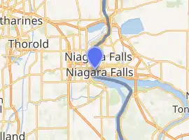 The Upper Steel Arch Bridge, also known as the Honeymoon Bridge or Fallsview Bridge, was an international bridge which crossed the Niagara River, connecting Niagara Falls, Ontario, Canada, with Niagara Falls, New York, United States. It was located about 500 feet (150 m) upriver of the present-day Rainbow Bridge. It collapsed in 1938.
