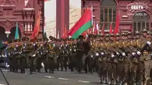 The annual Victory Day procession and Independence Day Parades on Victors Avenue take place with the full participation of the company.[14] The Defender of the Fatherland Day ceremony on Victory Square is also covered by the company.[15][16][17][18] During the Independence Day parade, it is notable not only for providing ceremonial markers in front of the tribune, but also performing precision exhibition drill since the 2002 parade on October Square.[19][20] Since 2004, the unit performing this drill routine known as the "Combined Guard of Honour Company" (Belarusian: Зводнай Роты Ганаровай Варты), consisting of full-time units personnel from the Armed Forces, the Border Guard Service, and the Internal Troops of the Ministry of Internal Affairs.[21][22][23]