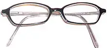 Horn-rimmed glasses are a type of eyeglasses. Originally made out of either horn or tortoise shell, for most of their history they have actually been constructed out of thick plastics designed to imitate those materials. They are characterized by their bold appearance on the wearer's face, in contrast to metal frames, which appear less pronounced.