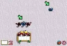 The game tasks the player with navigating a bus through roads filled with alien potato beings.[1][2] The player's bus holds female members of the alien race, and the player can shoot the females from the front of the bus in order to clear the alien potatoes.[1] The aliens come in two colors: red and blue. Aliens are cleared from the road when two like-colored potatoes touch each other, but aliens begin to pile up in the road if two aliens hit each other that are not of the same color.[1] The road is continuously scrolling downwards, forcing the player to make holes in the road wide enough to fit the bus through.[1] The game can end prematurely if the player runs into too many aliens and loses all their lives.[1][2]