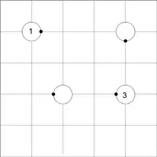 - Lines cannot be drawn from a black dot to another black dot, nor can they be drawn from a white circle not at its black dot to a white circle not at its black dot.