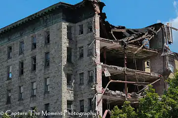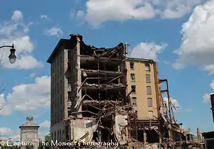 After a 17-month delay from the originally scheduled demolition date, demolition of the building commenced on July 25, 2013, the building was completely demolished by July 30, 2013, and clean-up is expected to be mostly complete by August 6, 2013. Below ground stabilization work will continue until around August 27, 2013. It must be completed no later than September 23, 2013. Brdaric Excavating was awarded the bid on June 18, 2013 for the demolition project after submitting the lowest bid ($419,000) out of 14 considered by the city.[10][11]