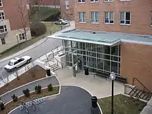 Darnall Hall provides housing for first-year students. It was built as a women-only dorm, and together with its male counterpart, Harbin Hall, cost $5.6 million.[4] At the time Darnall opened in 1965, women were only in the school of Nursing, the School of Foreign Service and the Institute of Languages and Linguistics.[4] It is the only Georgetown dormitory named for a woman, Eleanor Darnall, who was the mother of Georgetown University founder John Carroll and an early supporter of Catholic education in America.[5][6] Darnall is one of two Georgetown dormitories located within ANC District 2E04. As a result, it has been the focus of efforts to recruit Georgetown students to run for election to this District of Columbia position.[7][8]
