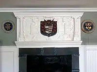John I Lovering (died 1675) was a merchant of Weare Giffard. The Lovering family held at some time the north Devon manor of Bittadon.[24] It is not clear how he came to reside at Hudscott; Andrews (1958) suggested that John I Lovering was a nephew of William Venner, and that at some time before his death in 1690 Venner had handed over the estate to Lovering. He married Dorcas Doddridge,[25] sister and co-heiress of John Doddridge (1610-1666), MP, of Bremridge, Filleigh. She was the daughter of Pentecost Dodderidge (died c. 1650) of Barnstaple, MP, by his wife Elizabeth Wescombe.[26] Pentecost Dodderidge was the brother and heir of Sir John Dodderidge (1555-1628), a Judge of the King's Bench, who had purchased for his seat the estate of Bremridge, near South Molton. Bremridge survives today, but without the demolished wings of the grand Dodderidge mansion, but the arms of Dodderidge survive above the front door. The judge's magnificent effigy survives in the Lady Chapel of Exeter Cathedral. The Dodderidge family were important merchants and ship-owners in Barnstaple and their Elizabethan mansion survived until the early 20th century in Cross Street, Barnsatple, until it was demolished to make way for a new post office. The oak panelling and chimneypiece of one room however was saved and now lines the walls of one of the rooms in the Barnstaple guildhall. The arms of Lovering impaling Dodderidge exist at Hudscott on an escutcheon within a scroll-work plaster overmantel in the hall.[27] It was apparently Dorcas Dodderidge who was referred to in an 1871 text on the Great Ejection of 1662:[28]