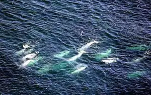 ![]() School of beluga whales in Hudson Bay | |