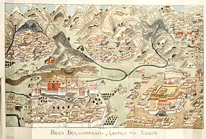 Bichurin was born in Akulevo to a Russian half-Chuvash priest named Iakov and Russian mother Akulina Stepanova. He studied at a church choir school in Sviiazhsk and later at the Kazan Theological Seminary.[2][3] He also studied Latin, Greek and French and his abilities were noticed by Archbishop Amvrosij Podobedov of the Russian Orthodox Church. He taught in Kazan Theological Seminary from 1799 and was anointed a monk in 1800 with the name of Iakinf or Hyacinth and tonsured, sent to promote Christianity in Beijing, where he spent the next 14 years. The genuine objects of his interest were Chinese history and language. He was forthwith accused of lacking religious zeal, and when he appeared in Irkutsk with his lover Natalia Petrova, some of his students reported him. Complaints over other behaviours considered inappropriate for a priest kept coming. After several changes in the Russian orthodox mission, the Synod declared Bichurin guilty on 4 September 1823, stripped him of his archimandrite monk rank and incarcerated him for life in the Valaam Monastery. Here he translated a number of ancient and medieval Chinese manuscripts, which had previously been unknown in Europe. In succeeding decades he published many volumes on Chinese and Mongolian history, geography, religion, statistics, and agriculture. After the death of Tsar Alexander I and the rise of Nikolai I in 1825, some of Bichurin's friends helped obtain a royal pardon. They also suggested a position for him as an interpreter in the Foreign Ministry. Bichurin then moved to take up a position in St Petersburg. He was elected as a corresponding member of the Academy of Sciences in 1828 and also became an emeritus librarian at the Petersburg Public Library. In the same year he published a "Description of Tibet in the Modern Age". He continued to clash with the church authorities and refused promotions. Tsar Nikolai I intervened in 1832 and forbade him from refusing promotions and ordered him to live in the Alexander Nevskii monastery.[4]