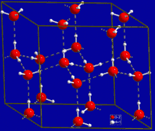 The number of hydrogen bonds formed by a molecule of liquid water fluctuates with time and temperature.[38] From TIP4P liquid water simulations at 25 °C, it was estimated that each water molecule participates in an average of 3.59 hydrogen bonds. At 100 °C, this number decreases to 3.24 due to the increased molecular motion and decreased density, while at 0 °C, the average number of hydrogen bonds increases to 3.69.[38] A more recent study found a much smaller number of hydrogen bonds: 2.357 at 25 °C.[39] The differences may be due to the use of a different method for defining and counting the hydrogen bonds.