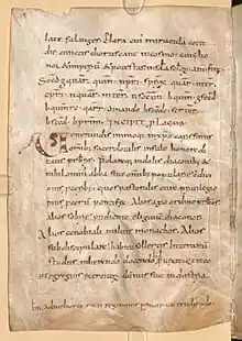 Hygeburg was, in her own words, "a humble relative" of Wynnebald, Walburg and their brother, Willibald.[1] On Tuesday, 23 June 778, while he was visiting Heidenheim, Willibald dictated to Hygeburg an account of his pilgrimage to the Holy Land in the 720s[2] or 730s.[1] She subsequently worked this account into a biography of Willibald,[1] called the Hodoeporicon ("relation of a voyage").[2] (The conventional name Vita Willibaldi, "Life of Willibald", was given to it by editors.[3]) From her choice of phrase and motif, she must have had access to the Carmen paschale, the Vita Bonifatii and the riddles of Aldhelm.[1]