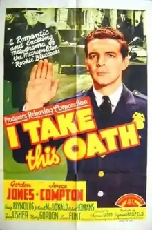 I Take This Oath is a 1940 American crime drama film directed by Sam Newfield, under the pseudonym of Sherman Scott. Featuring Gordon Jones and Joyce Compton, it was the first release by Producers Releasing Corporation. In 1952, Pictorial Films reissued it for television showings as Police Rookie.