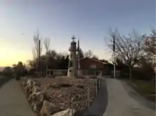 The Icelandic Monument is located at 785 E Canyon Road Spanish Fork, Utah. The monument consists of a wall listing the names of the 410 original Icelandic settlers, a lighthouse, and an Icelandic rock.[9] On the side of the lighthouse there is also a list of names, sixteen of the first Icelandic people to settle in Spanish Fork.[1] The purpose of the monument was to pay tribute to the people who founded the town, and to create a bridge between Iceland and Spanish Fork today.[10] The bridge has been reinforced by a sister monument that was built in Iceland.[4][10]