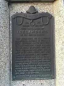 Spanish Fork, Utah was the first Icelandic settlement in the United States. Icelandic people settled there primarily from 1855-1914.[1] Icelandic influence in Spanish Fork is still prevalent today. This is primarily visible in the Icelandic Monument found in Spanish Fork, as well as the festivals that have been held over the years to pay tribute to the Icelandic people who helped establish Spanish Fork.
