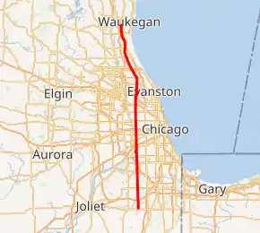 Illinois Route 43 (IL 43) is a 60.30-mile-long (97.04 km) major north–south state road in the U.S. state of Illinois. It runs from U.S. Route 30 (US 30) in Frankfort north to the large intersection of IL 120 (Belvidere Road) and US 41 (Skokie Highway) in Waukegan.