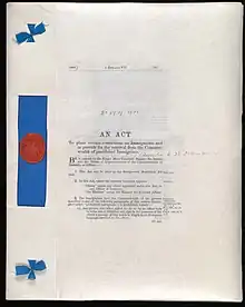 The Immigration Restriction Act 1901[2] was an Act of the Parliament of Australia which limited immigration to Australia and formed the basis of the White Australia policy which sought to exclude all non-Europeans from Australia. The law granted immigration officers a wide degree of discretion to prevent individuals from entering Australia. The Act prohibited various classes of people from immigrating and provided for illegal immigrants to be deported.[3]