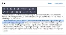 Pages are edited in a WYSIWYG way. By browsing through the website users can edit content by clicking on the inserted fields.