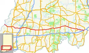 State Road 64 in the U.S. State of Indiana is an east–west highway that crosses most of the southern portion of the state, covering a distance of about 107 miles (172 km).